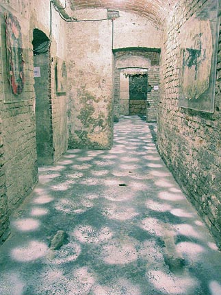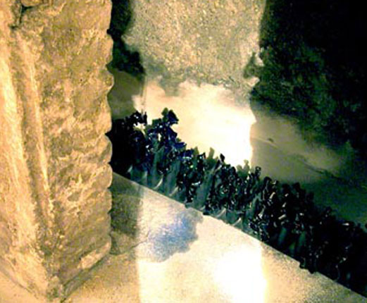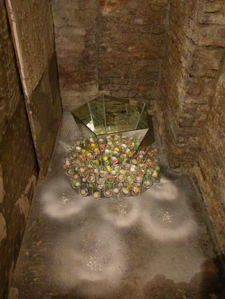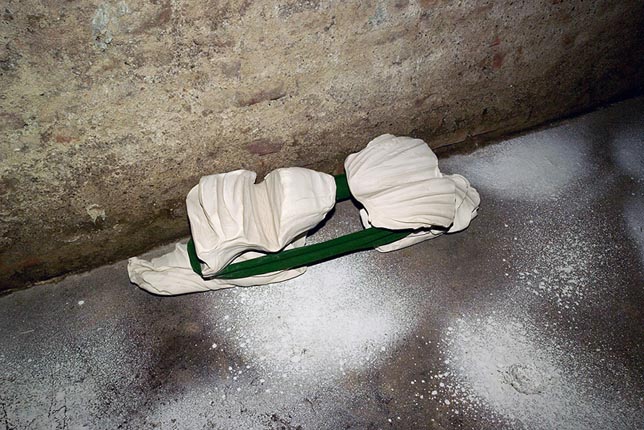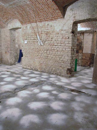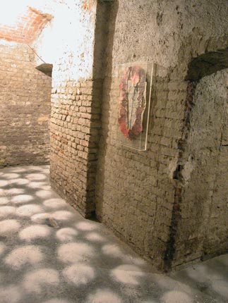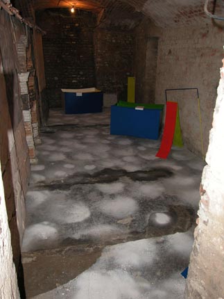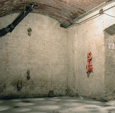Di seguito le altre opere tutte collocate rasenti i muri e sulle pareti come se il perimetro murario della cantina costituisse un ruvido foglio che racconta una storia di lavoro.